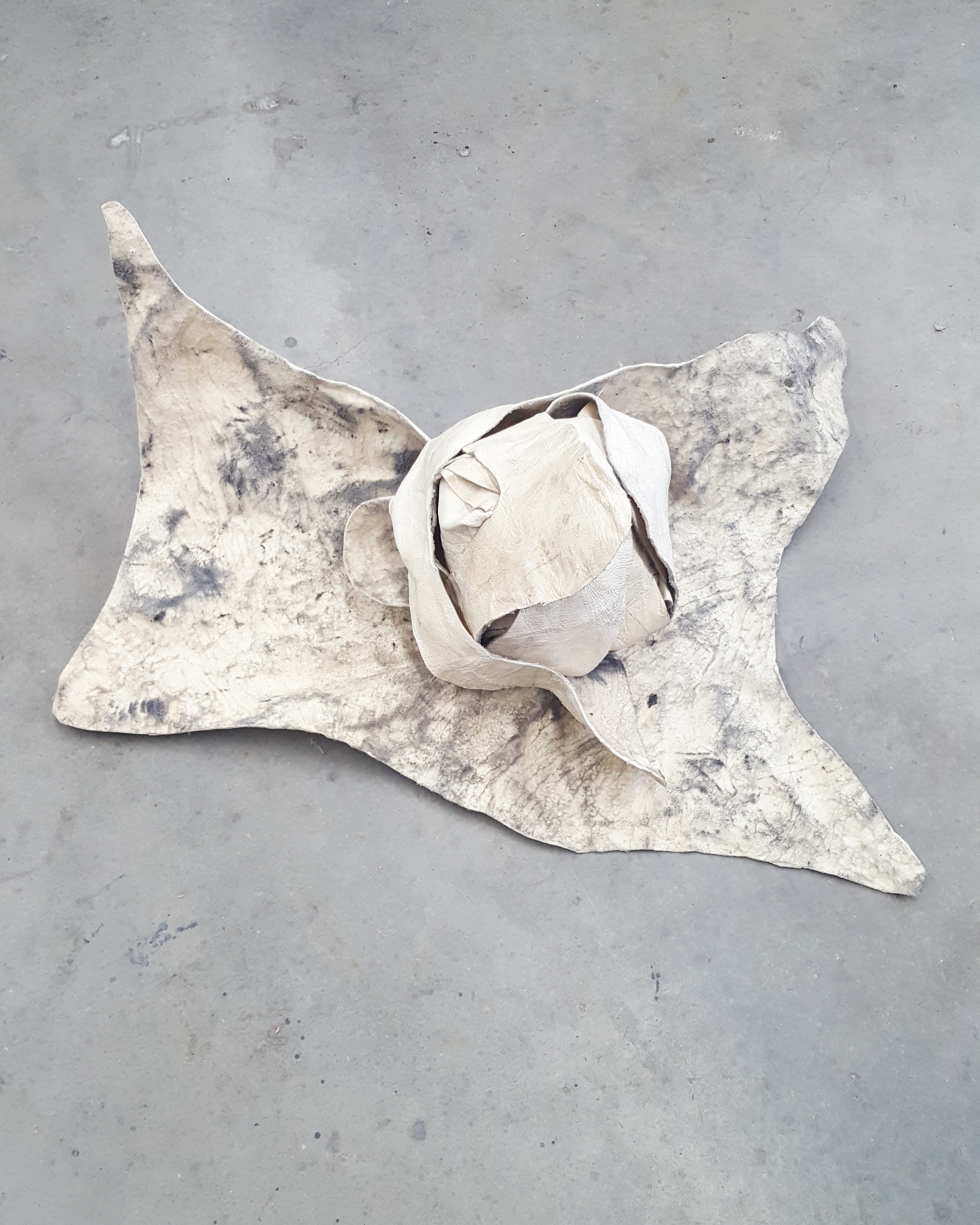 trailing/containing home deer skin, cast iron wasp nestcreated for the KONTAINER exhibition at Kunstverein Grafschaft Bentheim, Germany Related