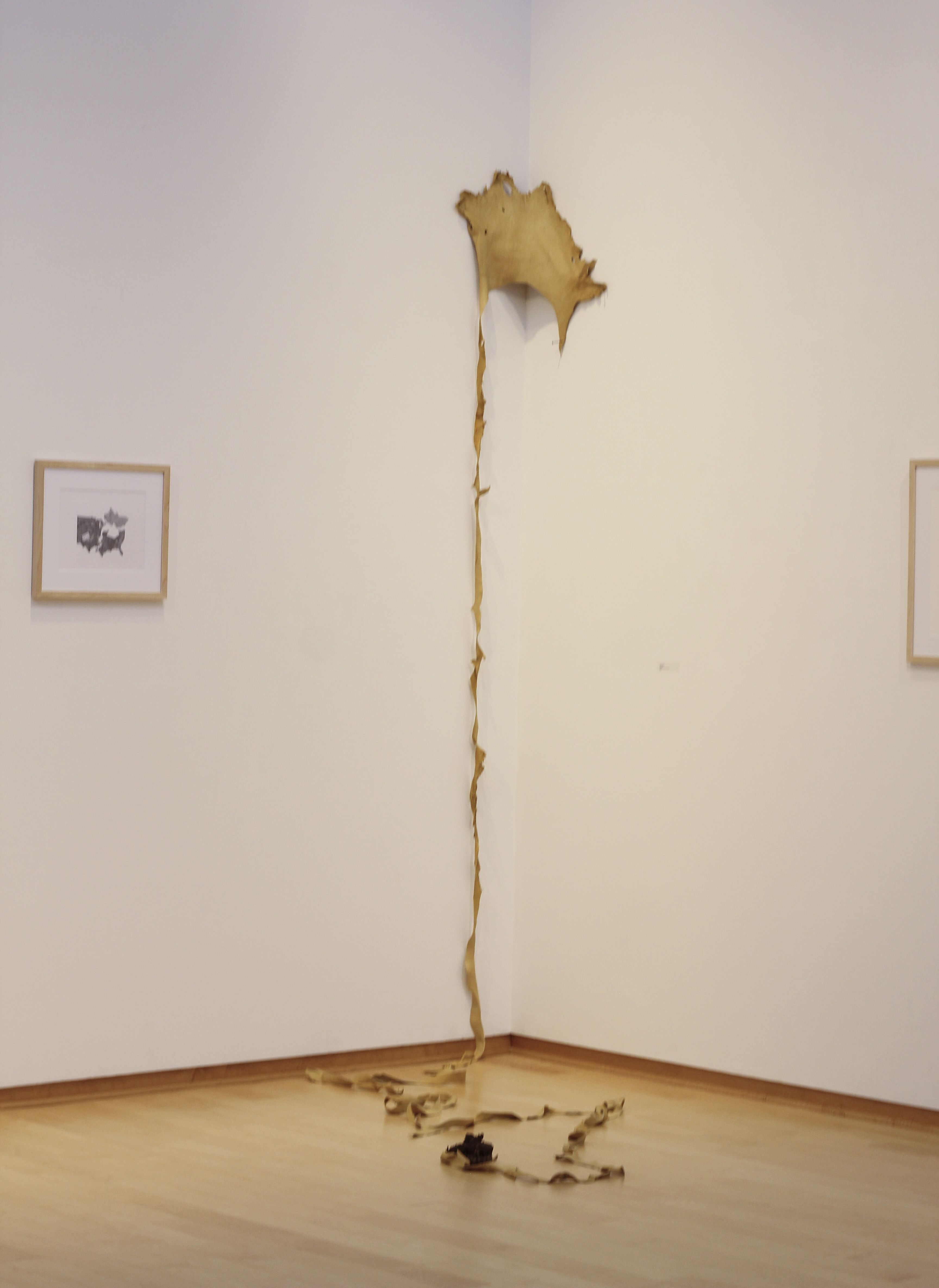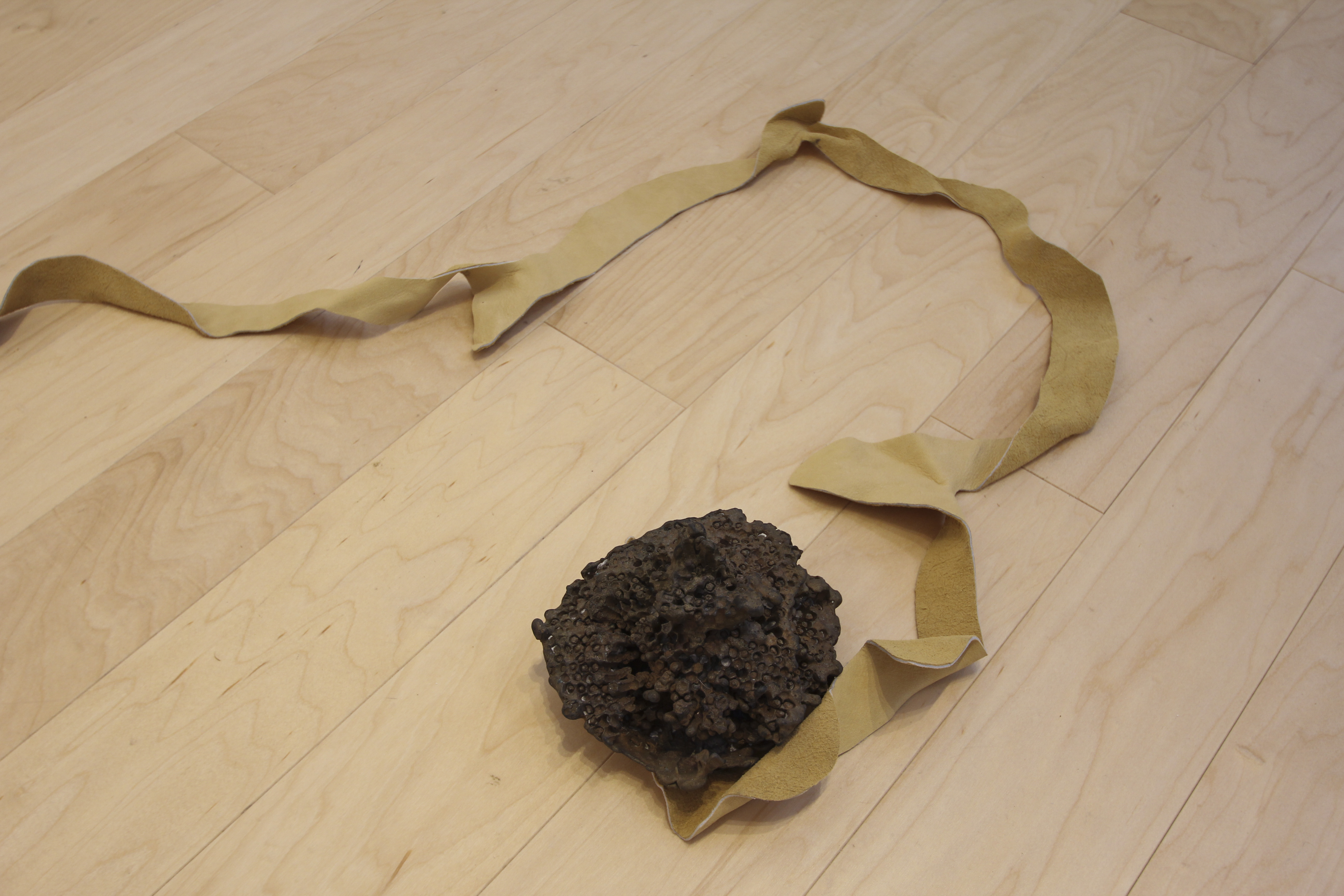 deer hide, cast bronze wasp nest